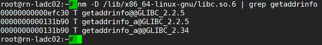 nm -D /lib/x86_64-linux-gnu/libc.so.6 | grep getaddrinfo