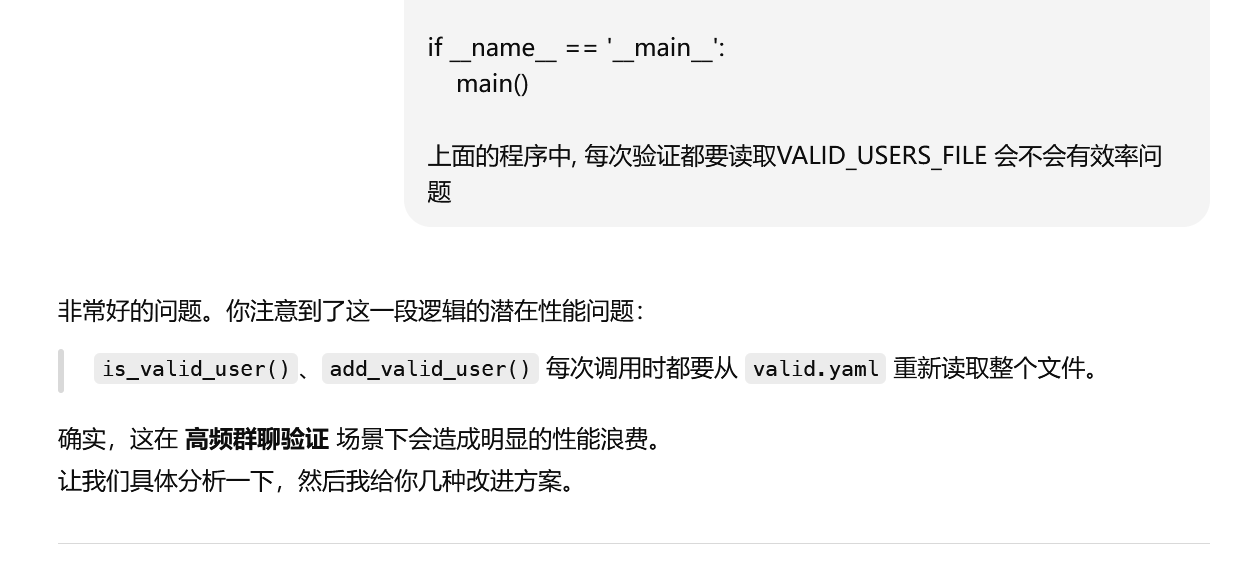 上面的程序中, 每次验证都要读取VALID_USERS_FILE 会不会有效率问题