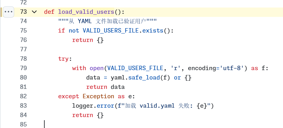 is_valid_user()函数 -> load_valid_users()函数 -> 打开yaml文件