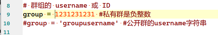 如果你是私有群(比如ID是 1231231231), 在使用本项目时, 修改文件中的ID为 -1001231231231
