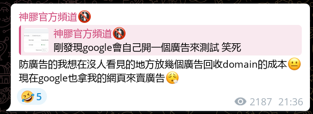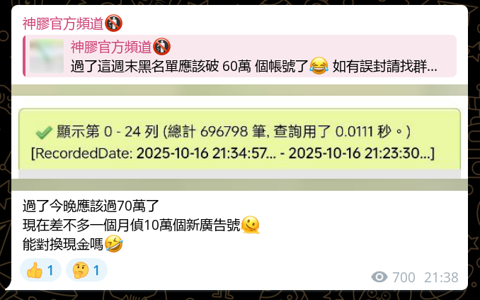 这时, 我到这个"防广告机器人" 的频道内看到, 2025-10-16 有这样一条