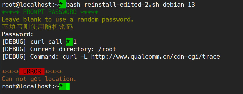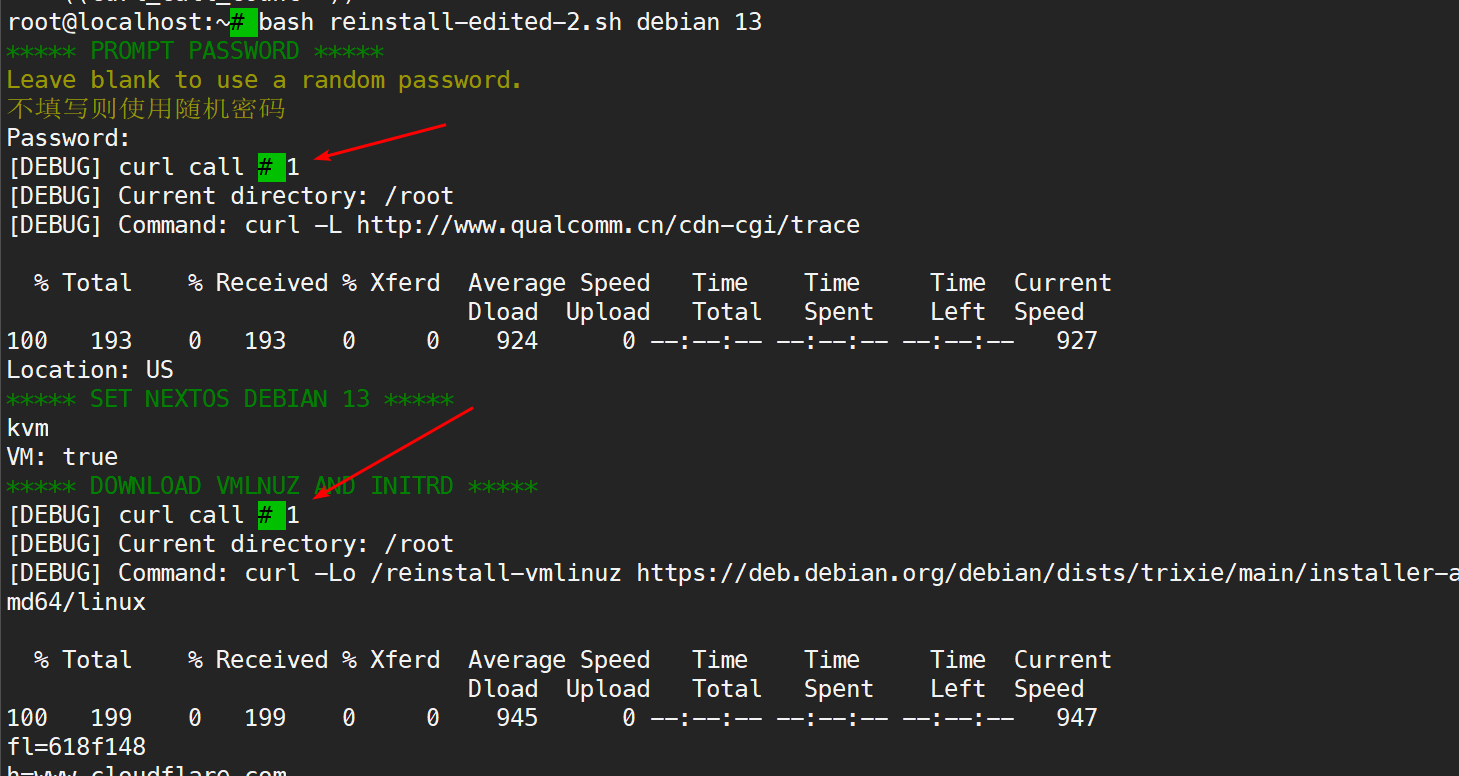 [DEBUG] curl call # 2[DEBUG] Current directory: /root[DEBUG] Command: curl -Lo /reinstall-vmlinuz https://deb.debian.org/debian/dists/trixie/main/installer-amd64/current/images/netboot/debian-installer/amd64/linux