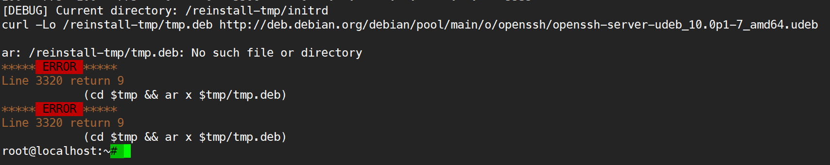 [DEBUG] Current directory: /rootcurl -Lo /reinstall-vmlinuz https://deb.debian.org/debian/dists/trixie/main/installer-amd64/current/images/netboot/debian-installer/amd64/linux[DEBUG] Current directory: /rootcurl -Lo /reinstall-initrd https://deb.debian.org/debian/dists/trixie/main/installer-amd64/current/images/netboot/debian-installer/amd64/initrd.gz