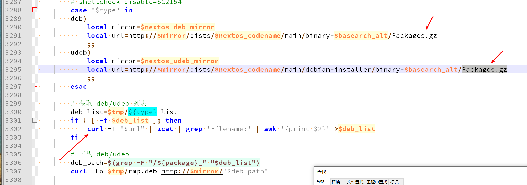 果然 Packages.gz 还是报错.我们在脚本中搜索 Packages.gz 找到
