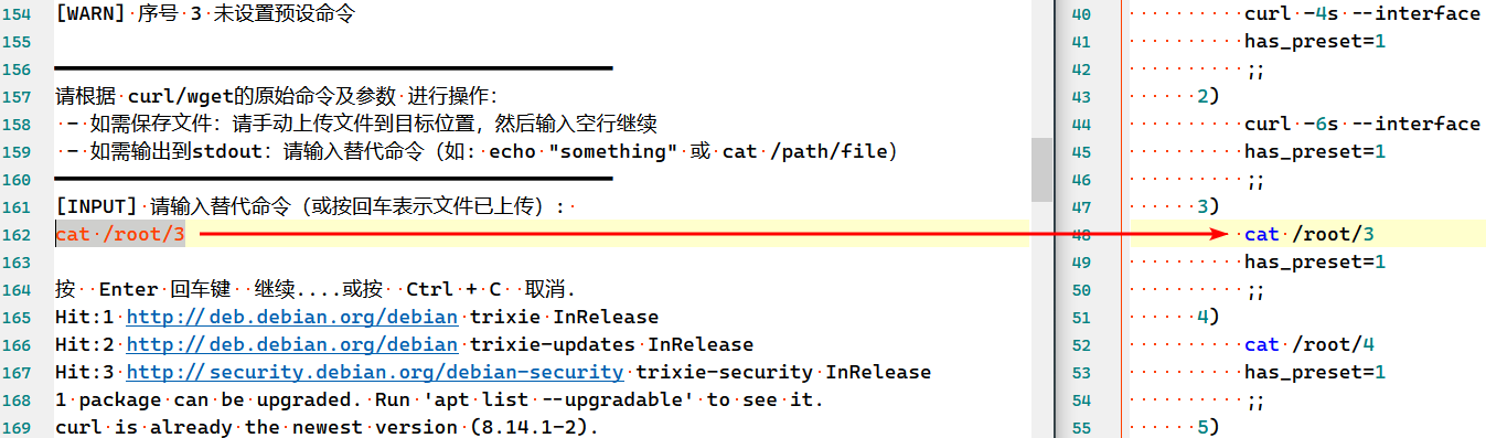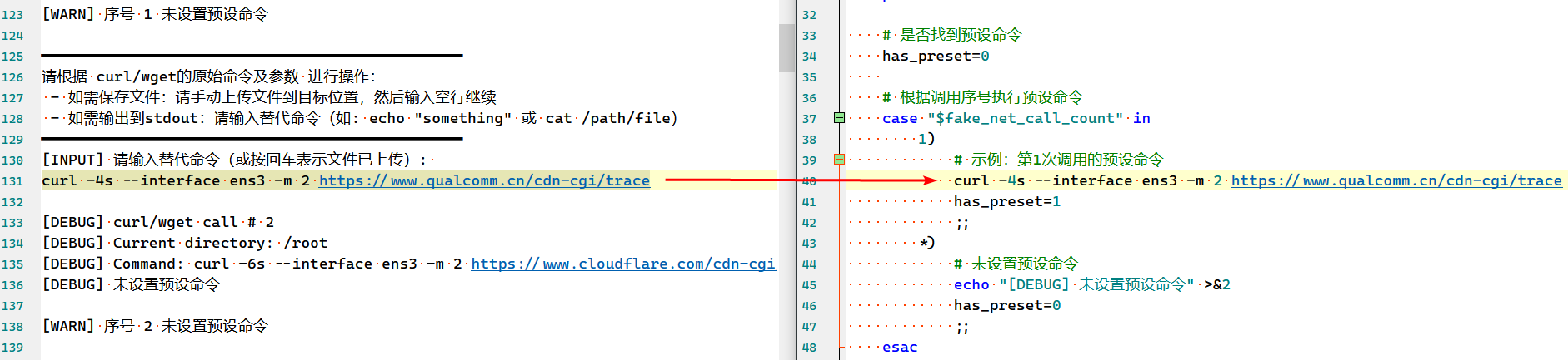 检查了一下, 是因为在 case 1) 的里面写了 curl. 这里并没有使用系统原本的curl, 而是调用了假的curl.