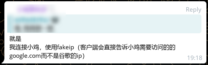 群友用的是fakeip的模式, 翻墙客户端发给梯子的数据包中只有域名, 没有IP.
