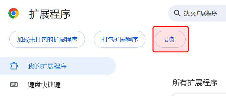 这时我发现 扩展程序管理页面 有个 更新 按钮.